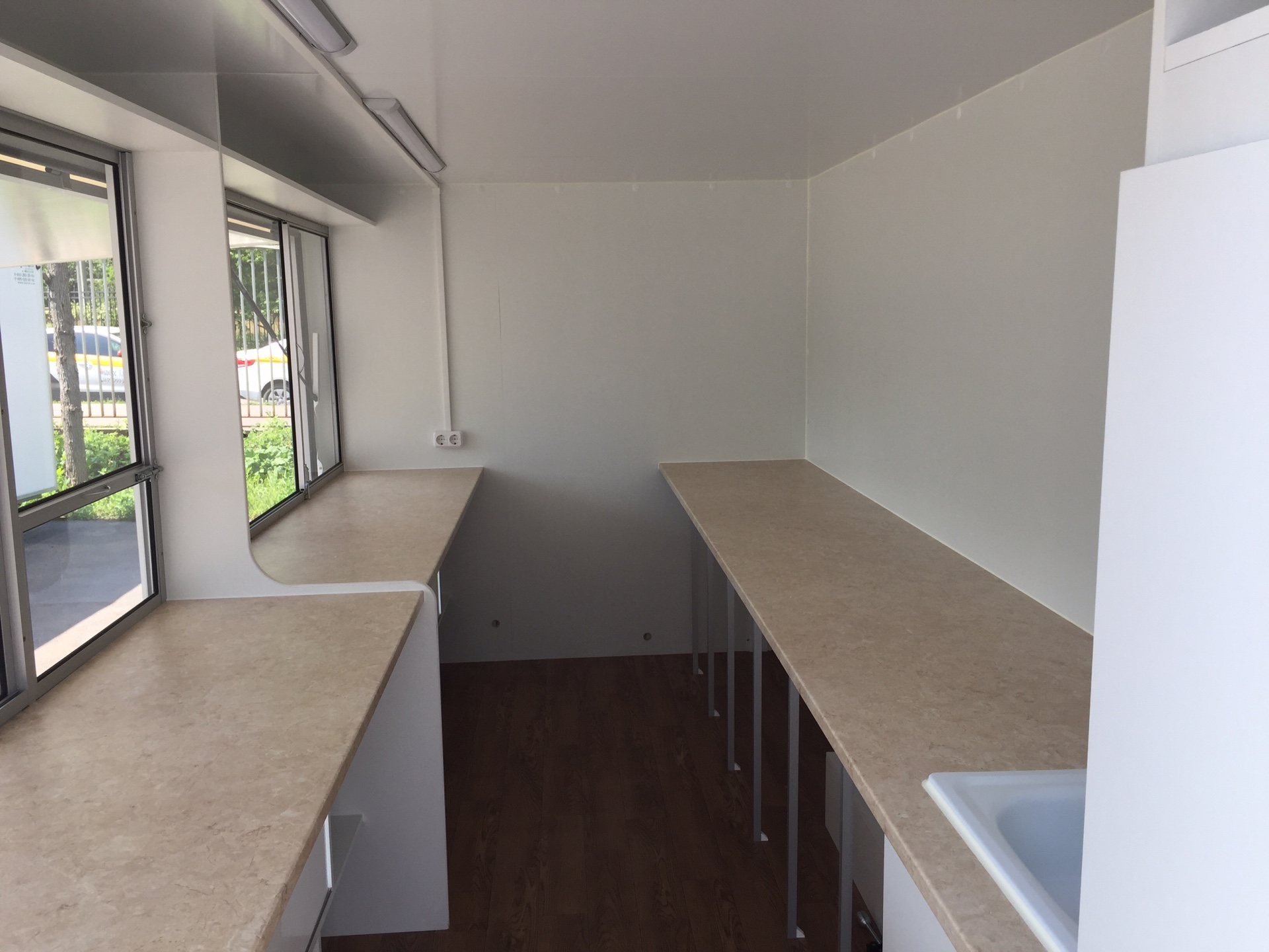 Прицеп длинной 3.9м, Два рабочих места, два окна выдачи. Грузоподъемностью до 120 кг. Большой и вместительный.