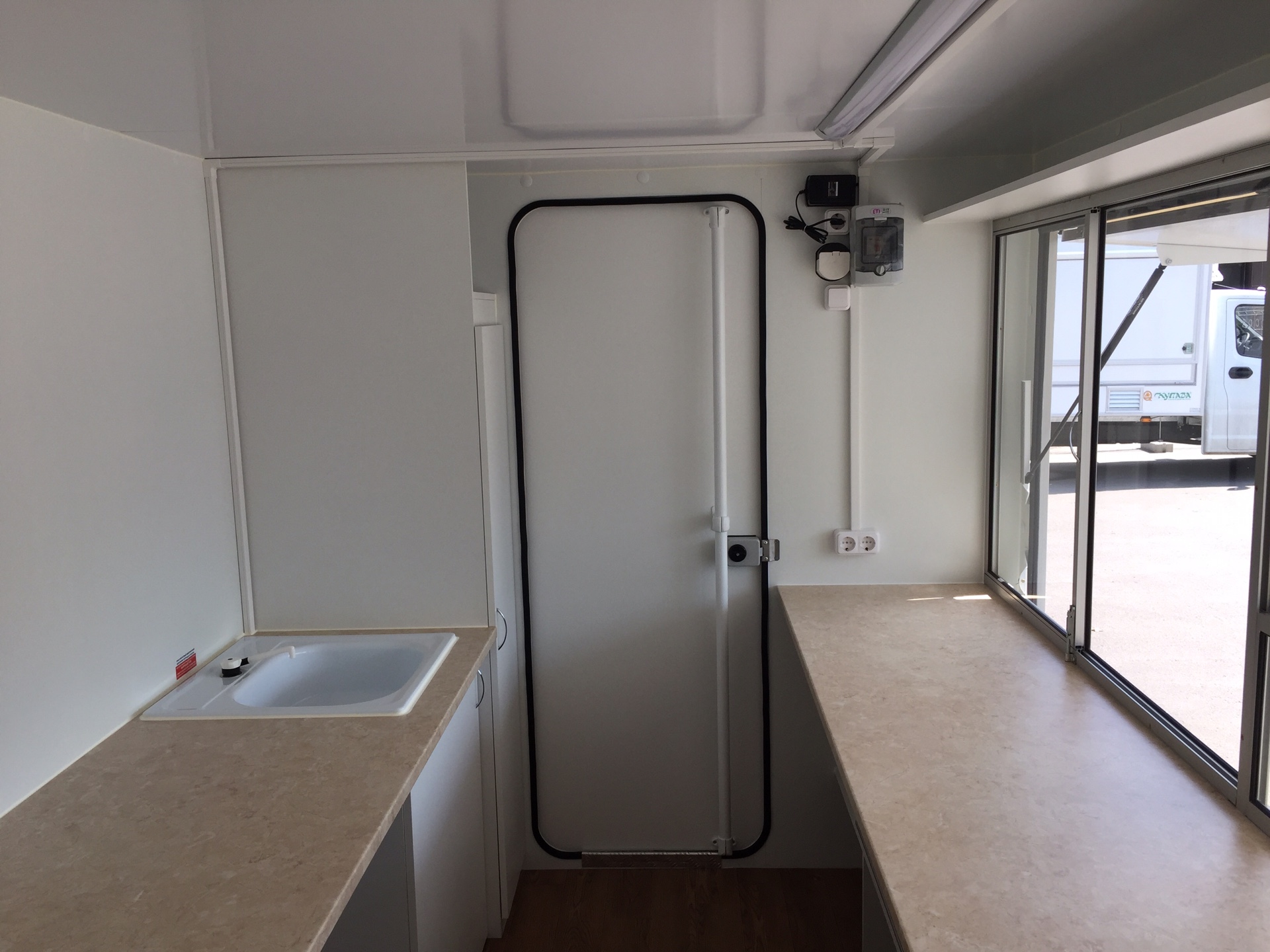 По желанию заказчика торговый прицеп может оснащаться холодильной или морозильный витриной и холодильным шкафом, что позволит вести торговлю скоропортящимися продуктами: мясом, молоком, рыбой и т. д.