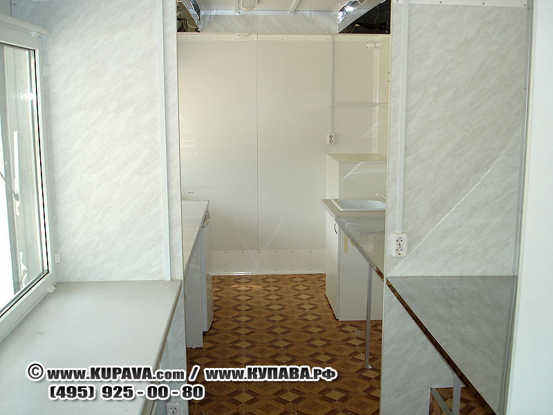 Купава 813226, длиной 6000мм внутри, — это практически стационарный магазин, который вмещает в себя четыре холодильные витрины общим объемом 1200л, два холодильных шкафа-купе объемом 2000л и морозильный ларь на 450л. Данный прицеп отлично подойдёт для установки в проходных местах и позволит работать двум продавцам одновременно!