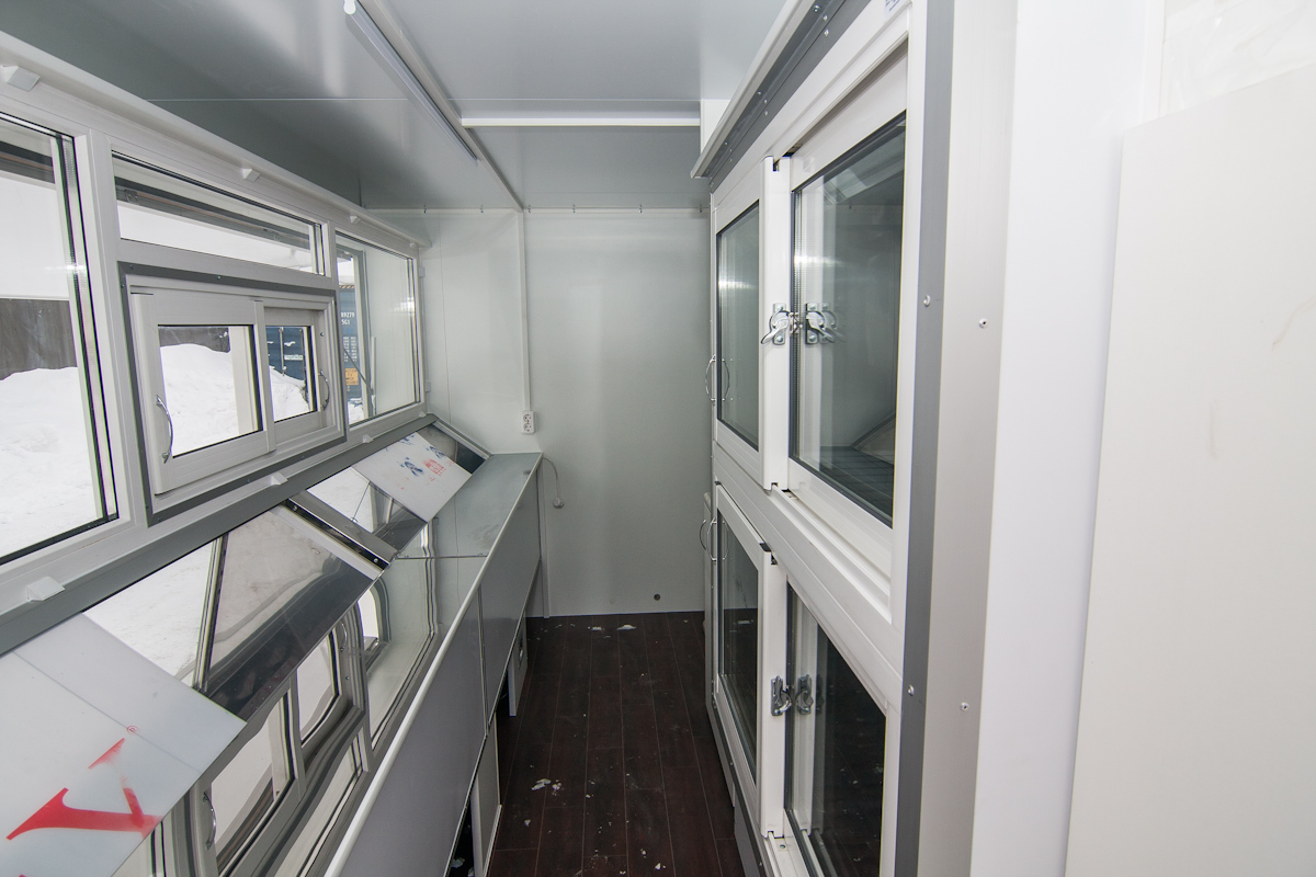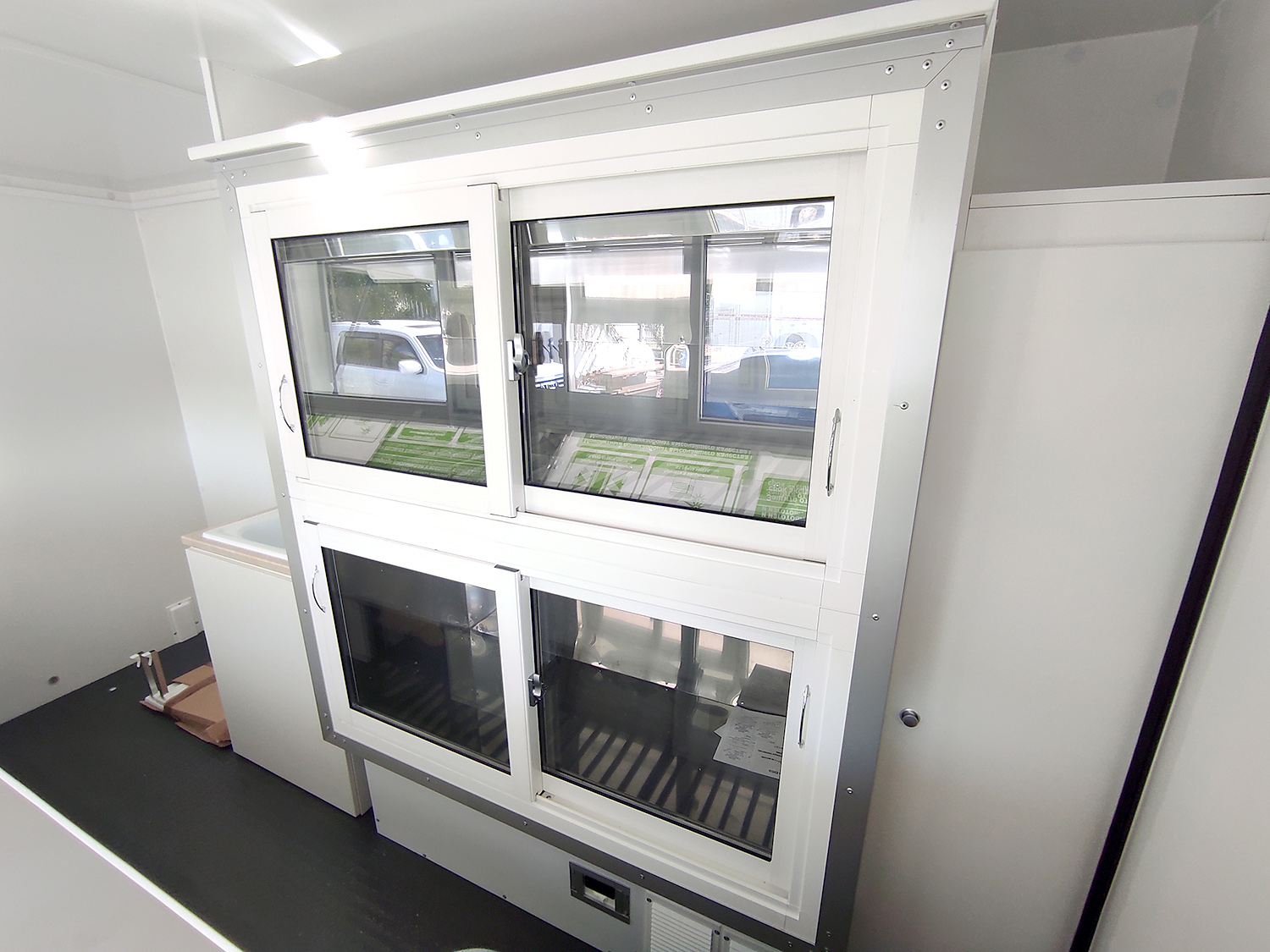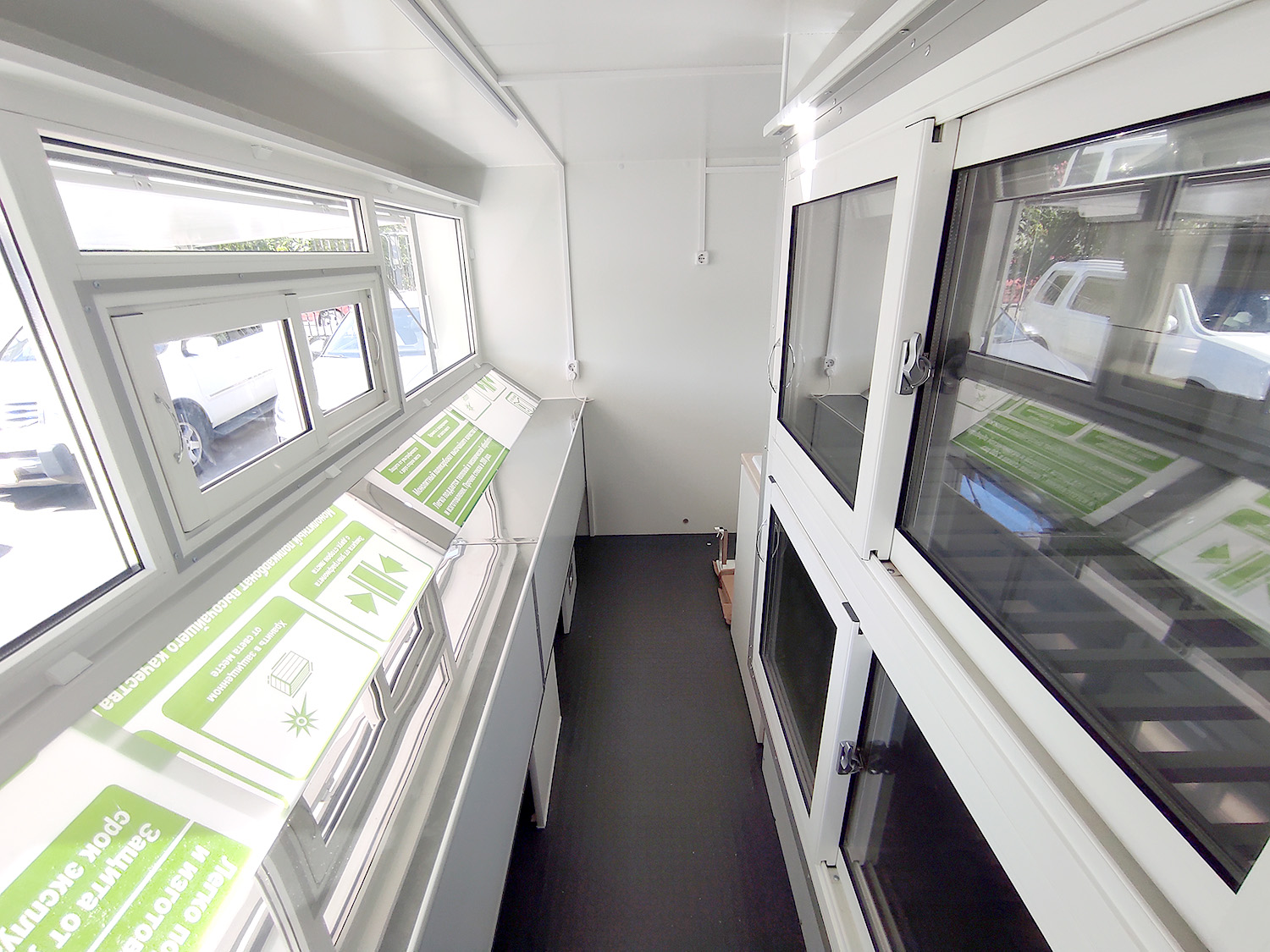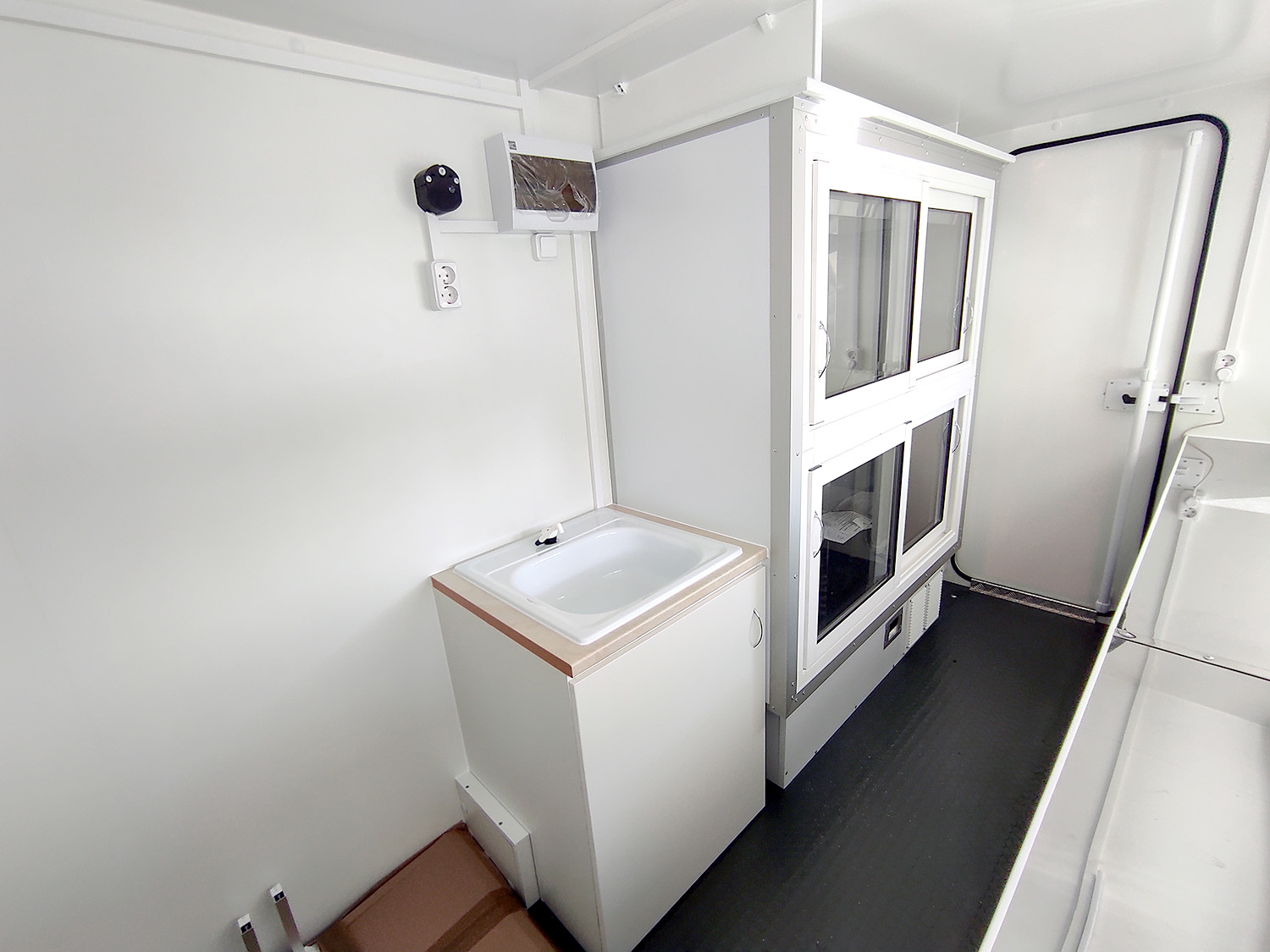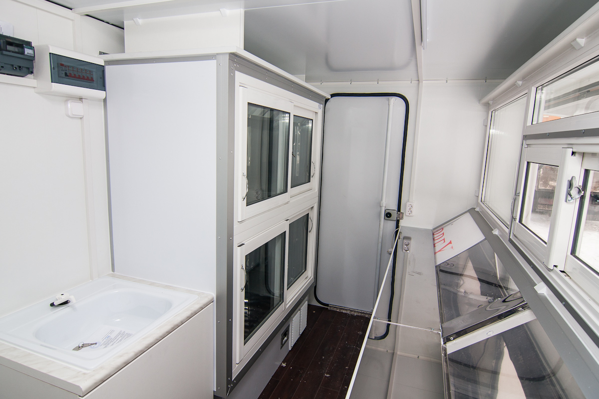 Прицеп длинной 3.2м. Установлены две специальные холодильные витрины на 320л, морозильный ларь 400л, кондиционер оконного типа, солнце-защита на ставню.