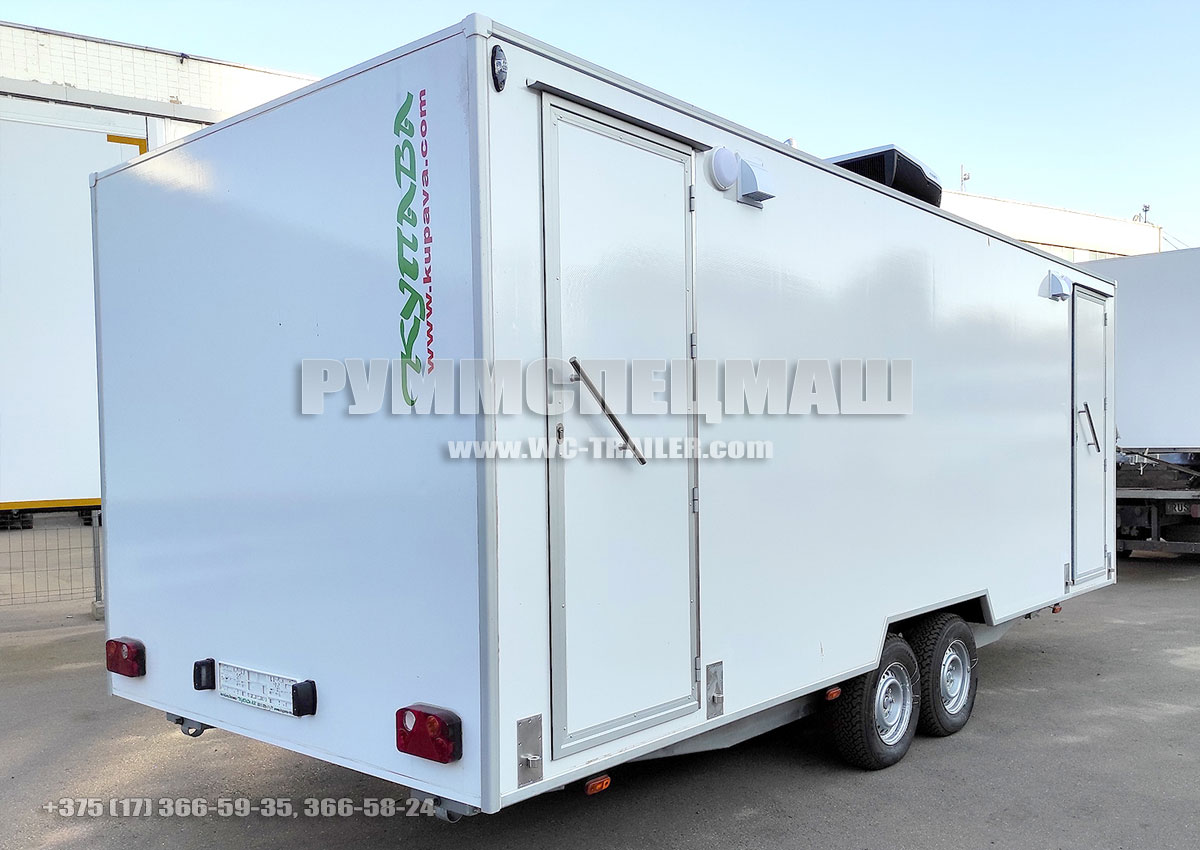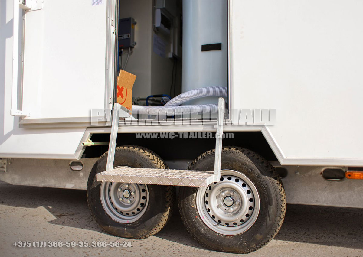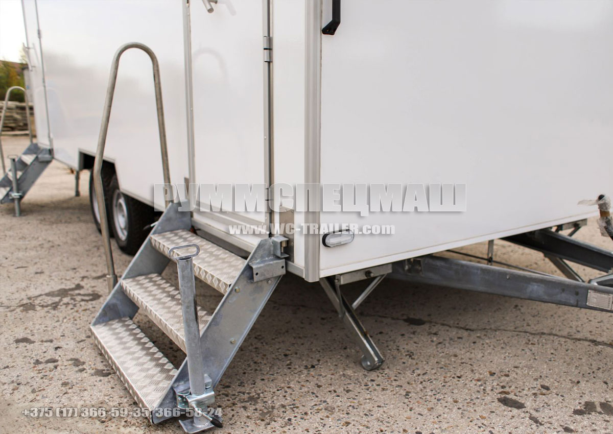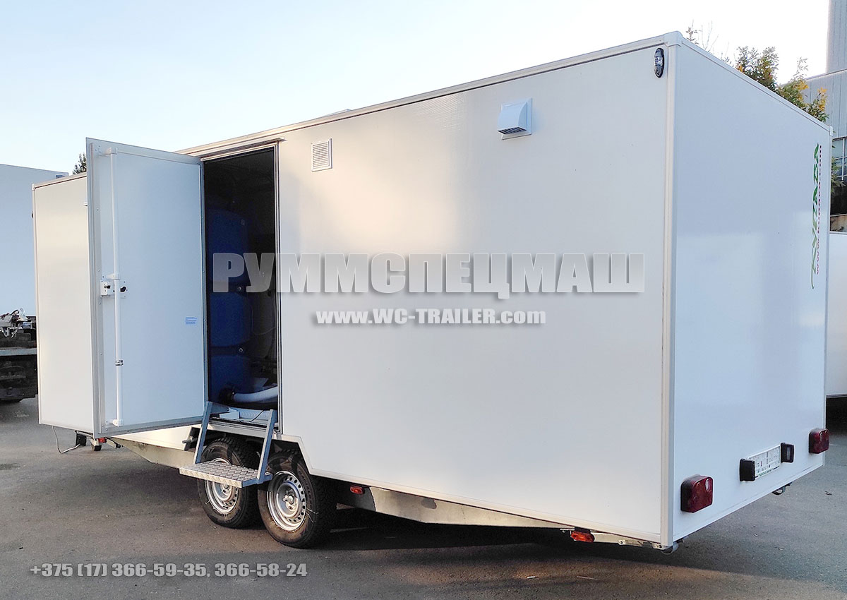 Специальный прицеп (мобильный туалет) состоит из трех отсеков: одного технологического и двух отсеков-уборных. Прицеп предназначен для использования во время массовых мероприятий, когда нет необходимости оборудовать стационарную точку, для обеспечения комфортных условий работникам различных ремонтных и строительных бригад во время работы в многолюдных местах и др. Конструкция прицепа позволяет его транспортировать обычным легковым автомобилем, не привлекая для перевозки различную подъемную и грузовую технику.